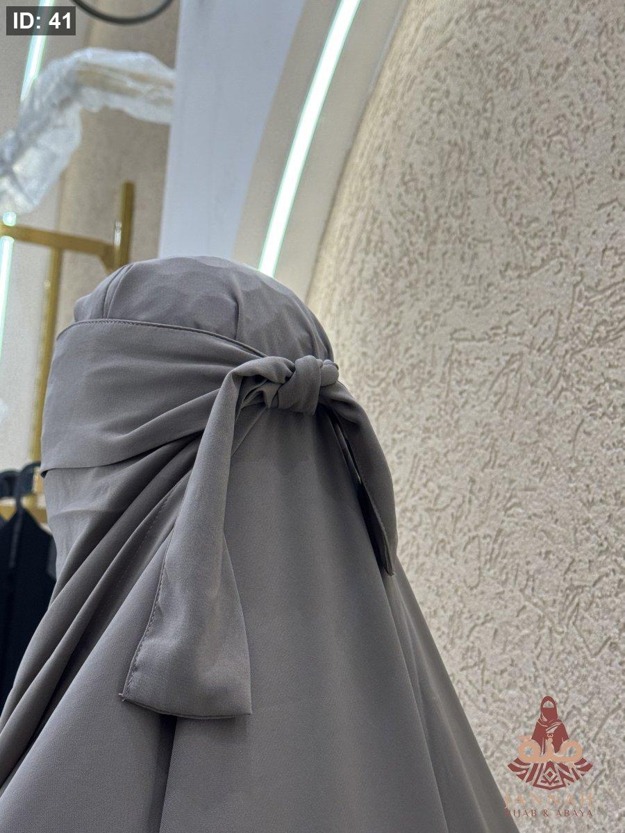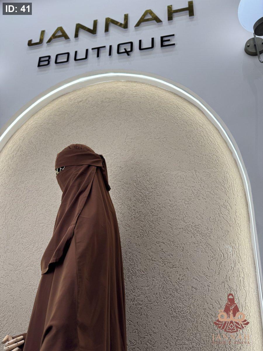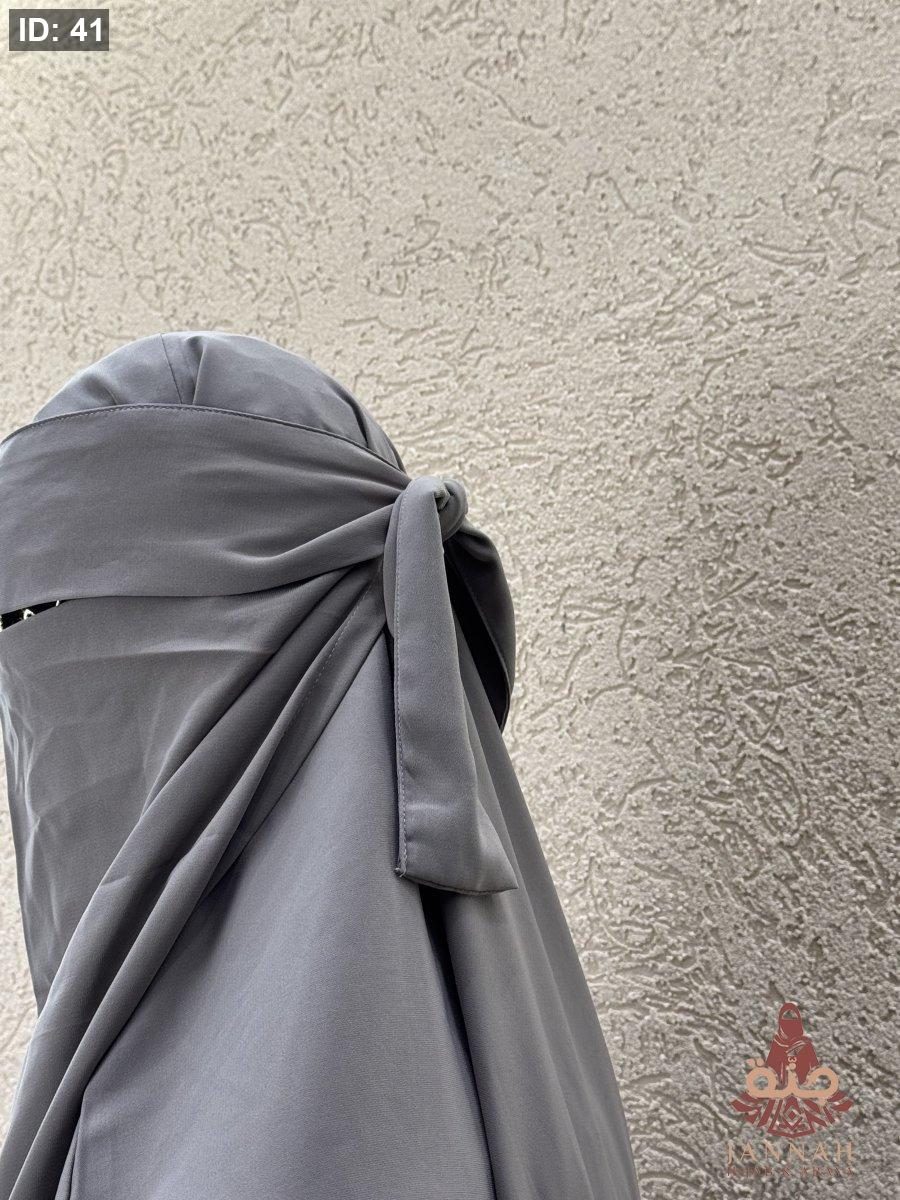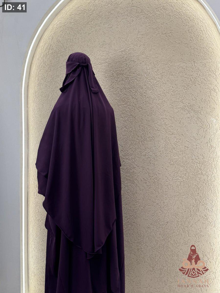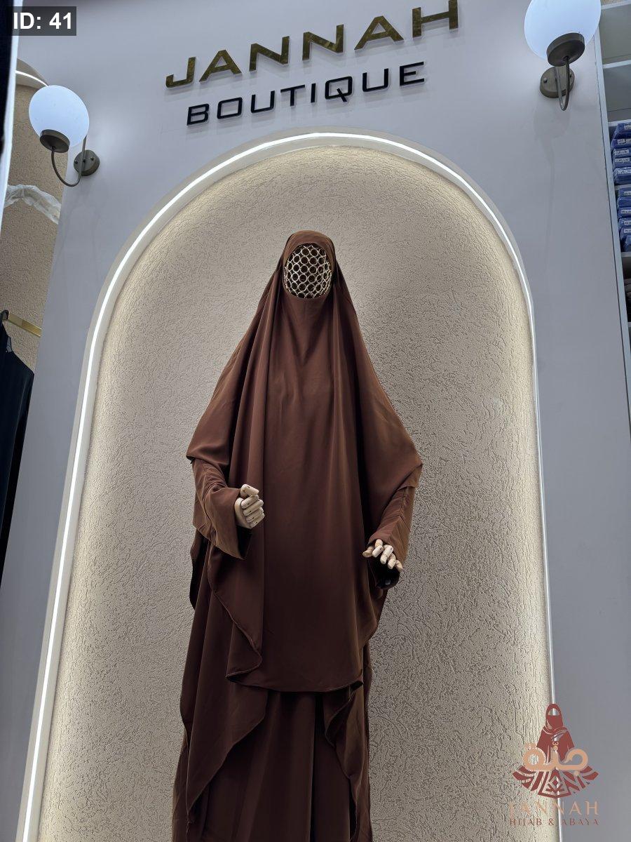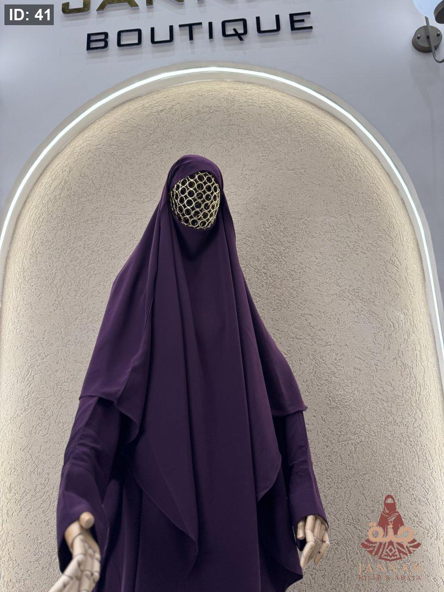 طقم مكون من تنورة وبلوز طويل واسمع وخمار طويل طبقة واحدة والنقاب تندة (اختياري)