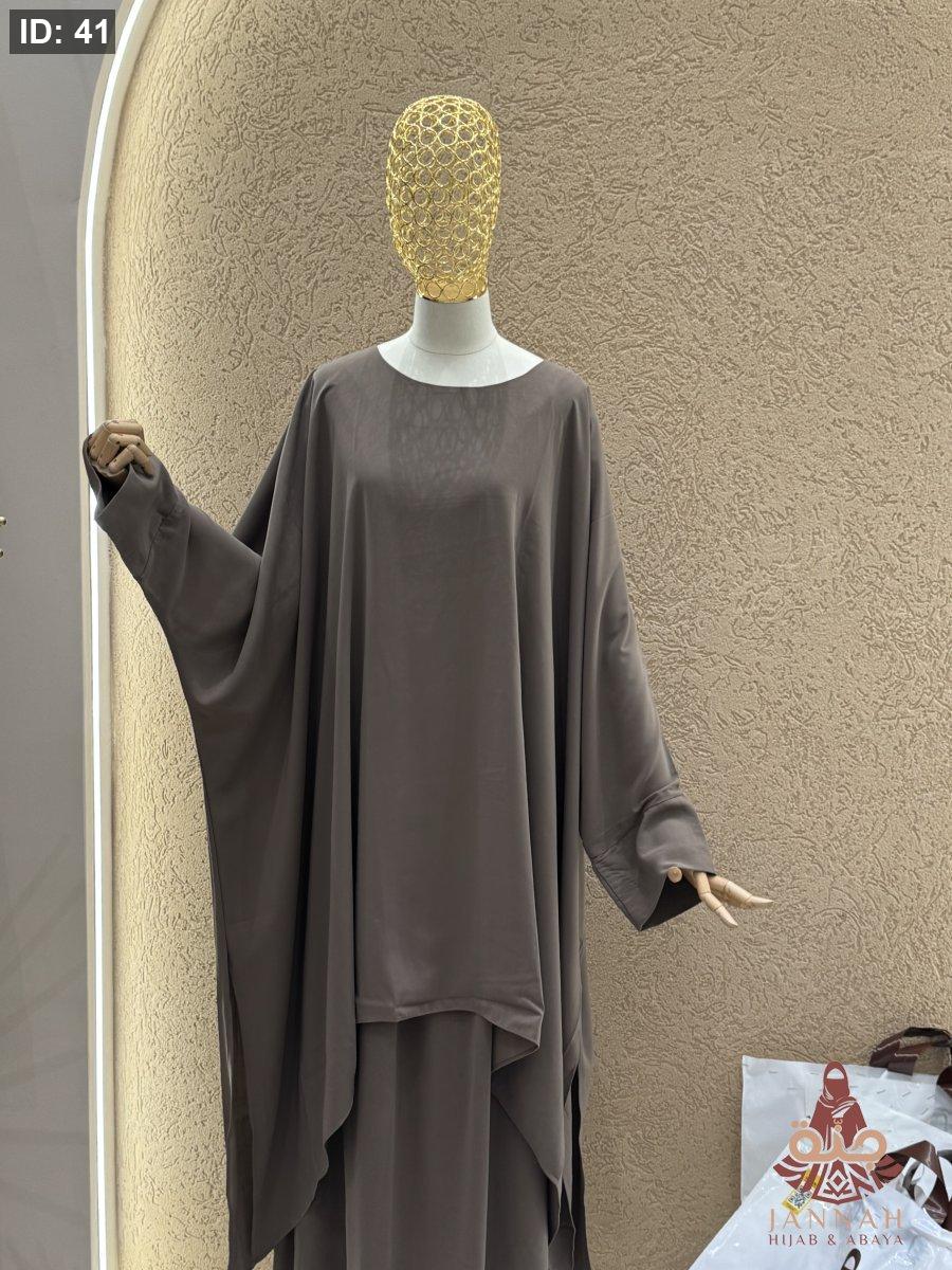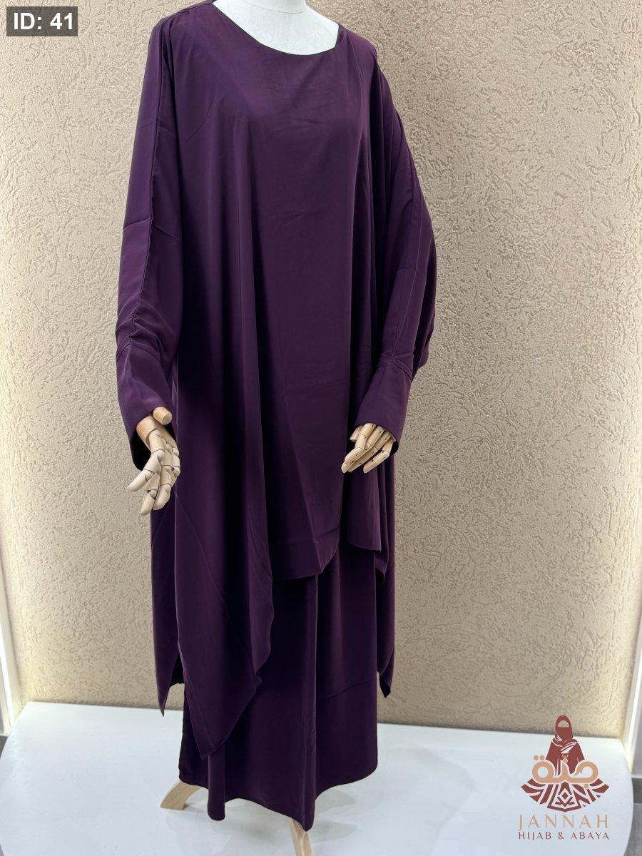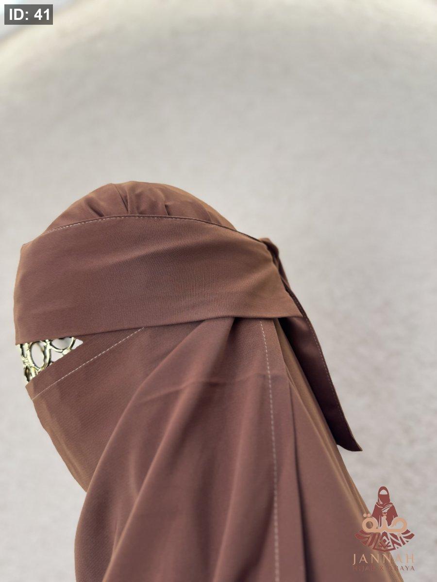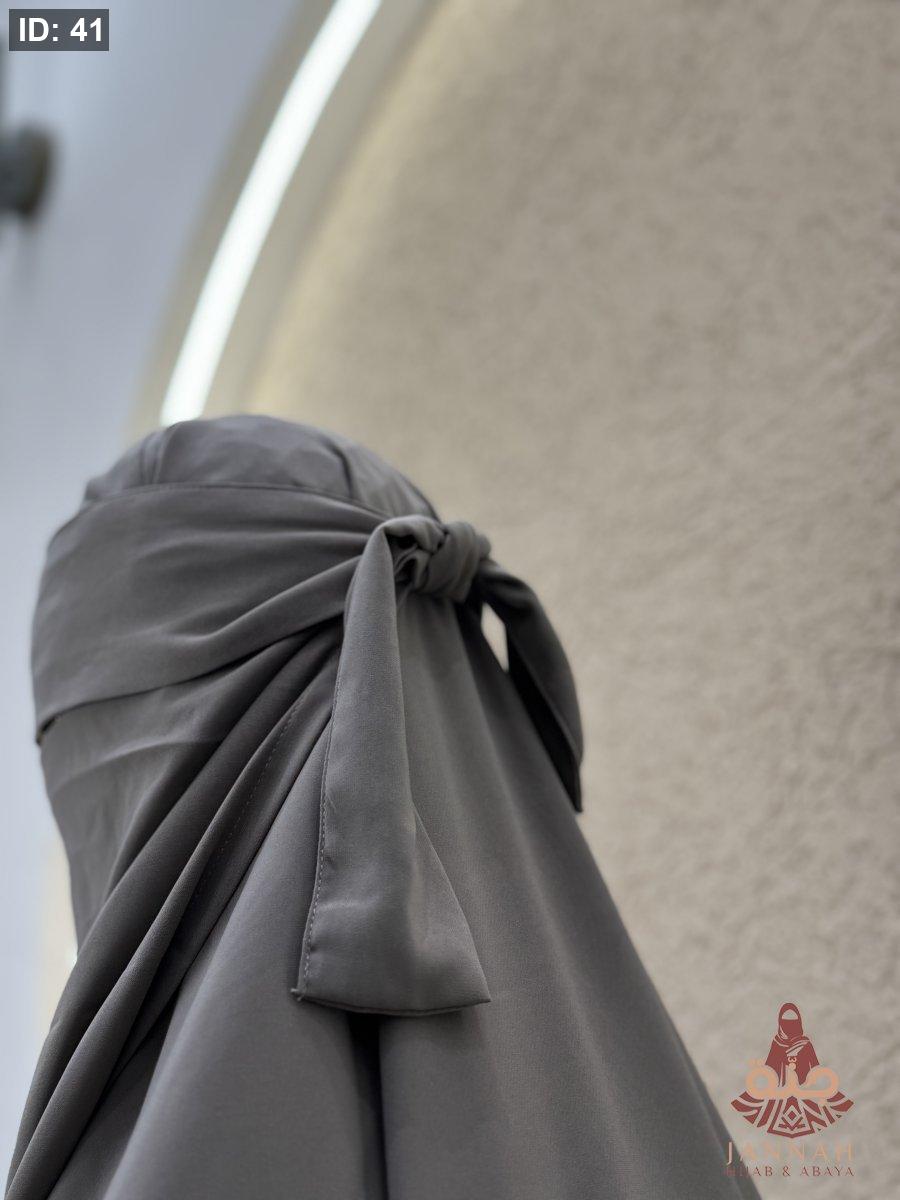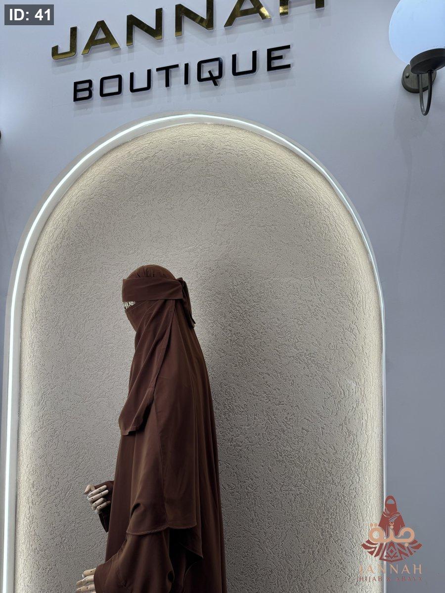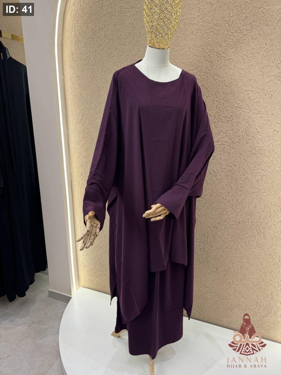 طقم مكون من تنورة وبلوز طويل واسمع وخمار طويل طبقة واحدة والنقاب تندة (اختياري)