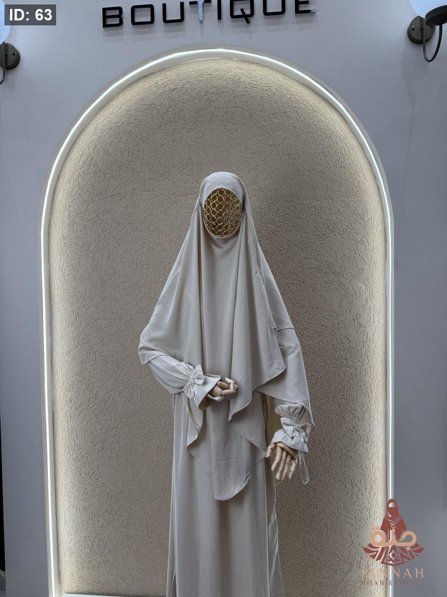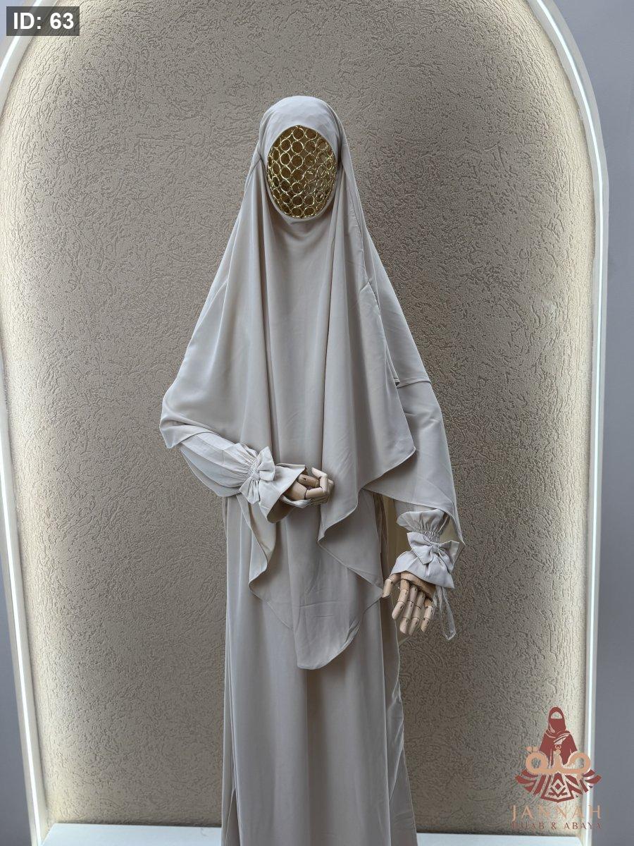 عباية قماش كريب مع يد ببيونة + خمار طبقتين من الخلف وطبقة من الامام